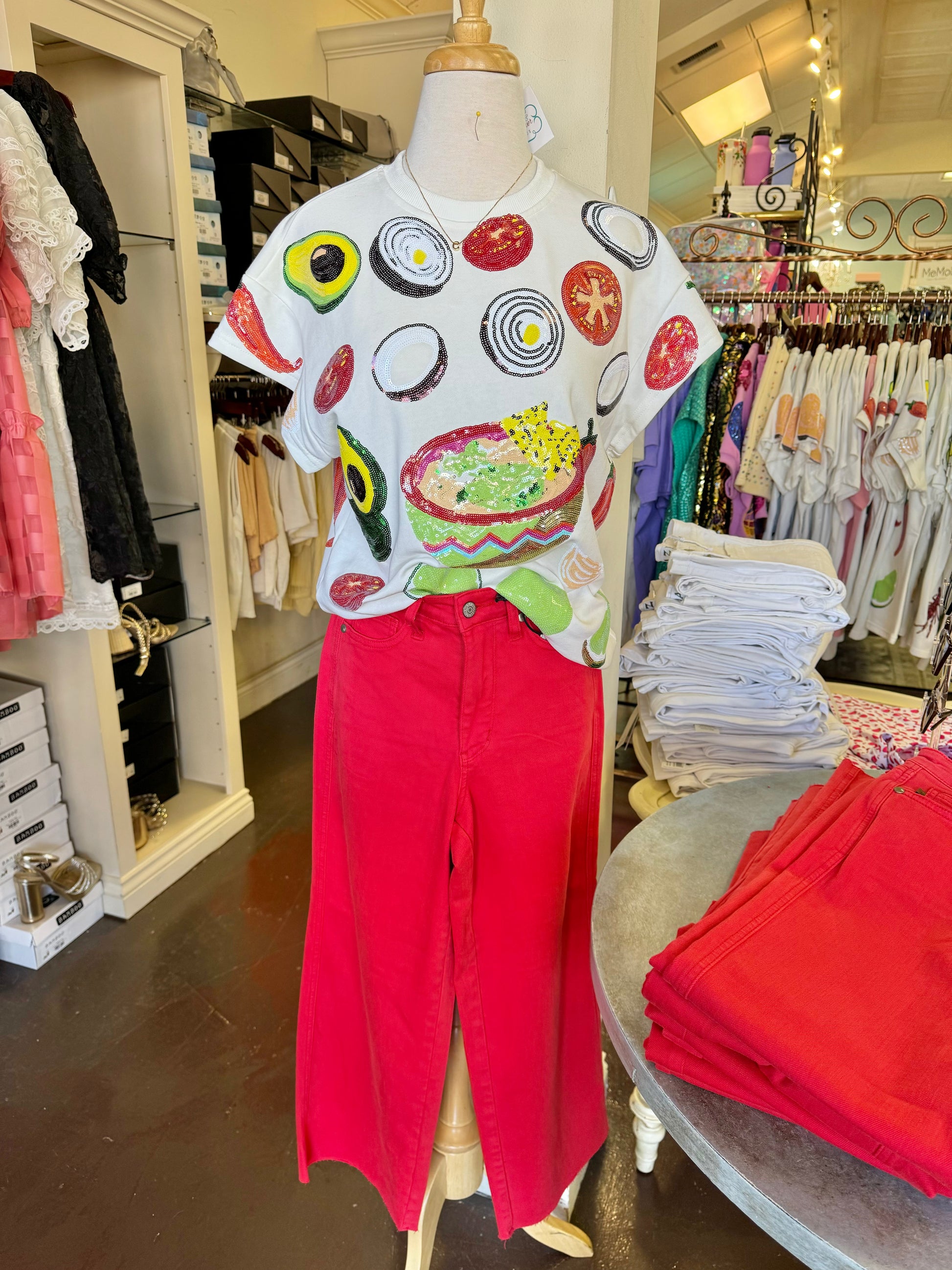As a queen of sparkle, elevate any occasion with our Guacamole Ingredient Tee. Expertly crafted with high-quality materials, this tee boasts a playful and stylish design that showcases your love for guacamole. Bring some fun and personality to your wardrobe with this unique and versatile piece.