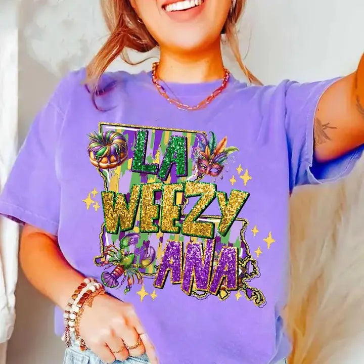 LA Weezy ANA Tee Choose between a Comfort Colors unisex tee or Gildan sweatshirt, both featuring a fixed print color that won't change regardless of garment selection. This versatile piece works as a standalone statement or layered essential. To preserve the design and fabric quality, turn the garment inside out before washing in cold water. Tumble dry on low heat or air dry for extended longevity. Avoid fabric softener, bleach, and direct iron contact on the printed area to maintain its integrity over time.
